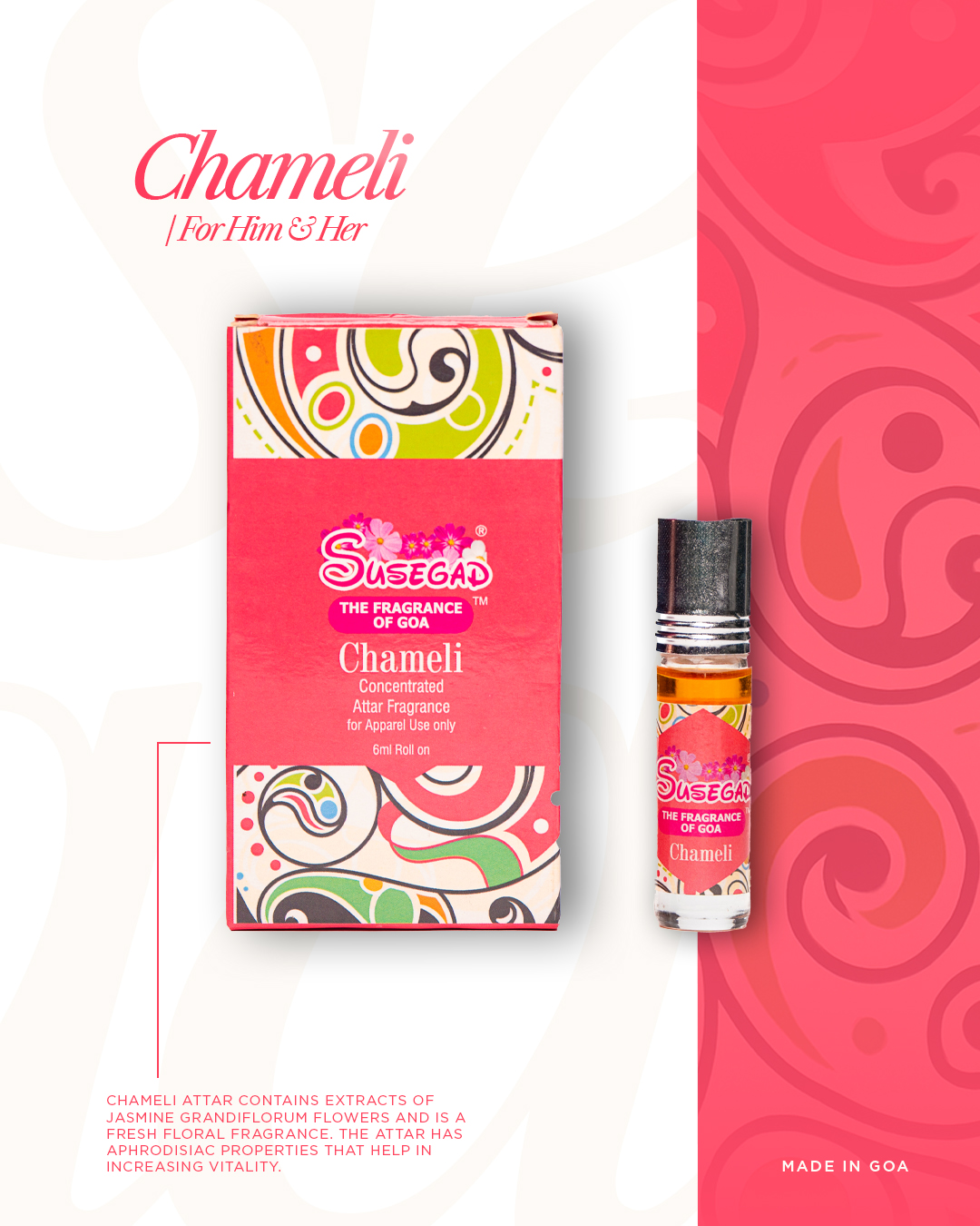 Chameli Attar contains extracts of Jasmine Grandiflorum flowers and is a fresh floral fragrance. The Attar has aphrodisiac properties that help in increasing vitality.